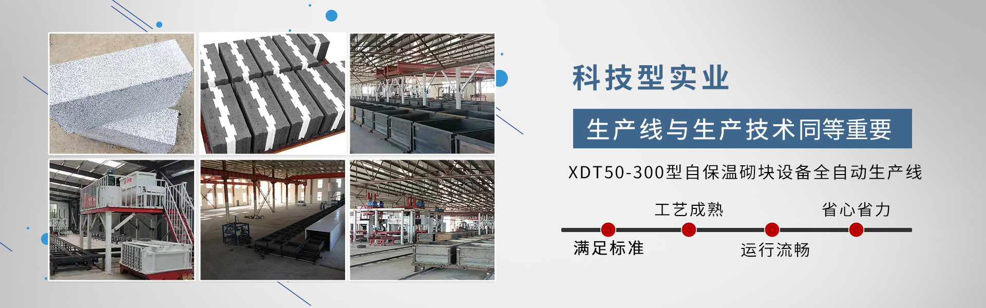 中科新大通勻質自保溫砌塊設備生產線,采用回形環線結構設計工藝,兩側周轉車、液壓推進裝置、輥道運行小車等部件,實現運行生產線周轉。自動化攪拌系統采用PLC程序操控電表柜控制上料、計量、攪拌、下料的工作流程,切割系統提供立式多片往復鋸與大圓盤鋸供用戶選擇。